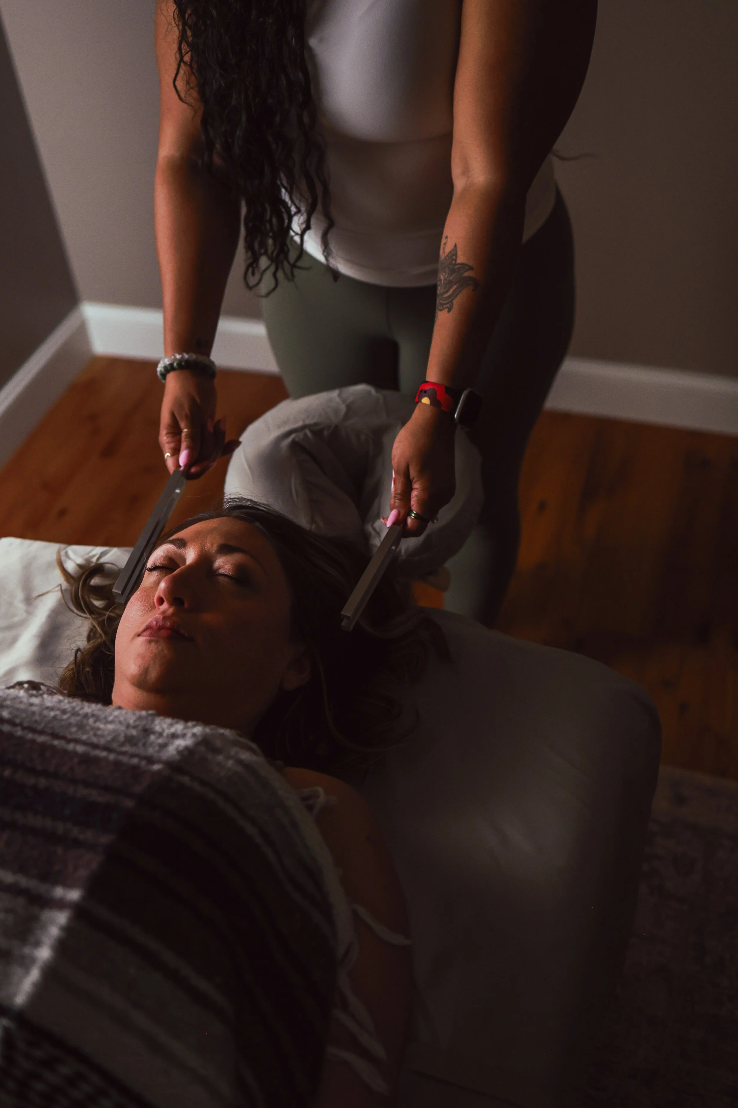 Sound and vibration therapy is a gentle, restorative practice that uses sound frequencies and vibrational energy to support physical and emotional well-being. Instruments such as tuning forks, gongs, drums, and Himalayan singing bowls are used on and around the body to create vibrations that resonate deeply with the nervous system. These vibrations may help ease stress, uplift mood, and encourage relaxation and healing. Clients remain fully clothed and rest comfortably on a table, lying face up, face down, or both during the session.